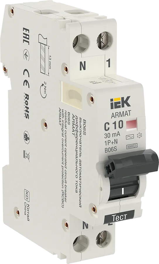 Автоматический выключатель дифф. тока (АВДТ) IEK AR-B06S-1N-C10C030