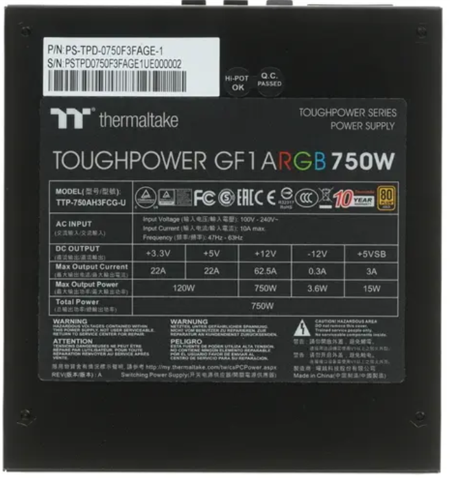 | Сертификация | 80 Plus GOLD |