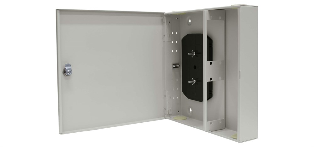 Кросс оптический настенный с дверцей, с замком TELCORD КН-24/32 32-ST/MM-32-ST/UPC-MM50(OM4)-1-КУ-GY