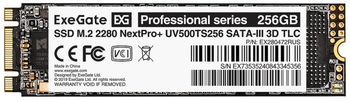 Накопитель;SSD;M.2;2280;Exegate;NextPro+;UV500TS256;256;ГБ