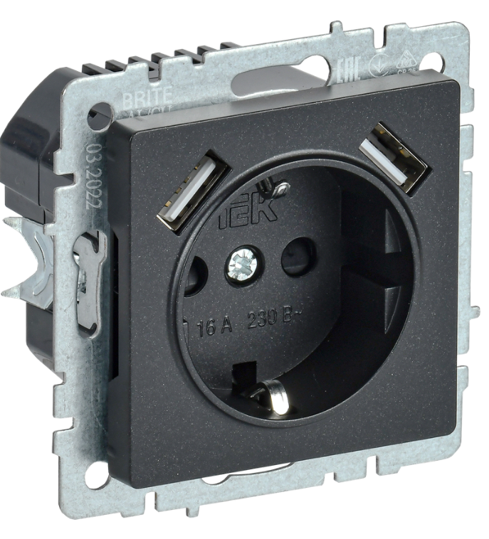 Розетка с заземлением IEK BR-R14-16-U21-D21-K46